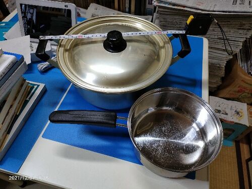 内径26cmのアルマイト鍋と18cmのステンレス鍋を捨てました。アルマイト鍋は、その大きさ故(取っ手を含めた長さは36cm)、ほとんど出番が無く、直近での使用は、1年ほど前、竹の子を大量にもらったときに茹でるのに使ったのが最後でした。痛みも無く一生モノ…