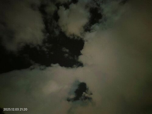 夜空を見上げると分厚い雲が、わりと低めに広がっていました。雲の間から星空が見えるのですが、これが何とも怖く思えて落ち着きません。こちらに覆い被さってくるようなそんな感じでしょうか。 写真を撮ってみましたが、一部分が写っているだけなので、状況…