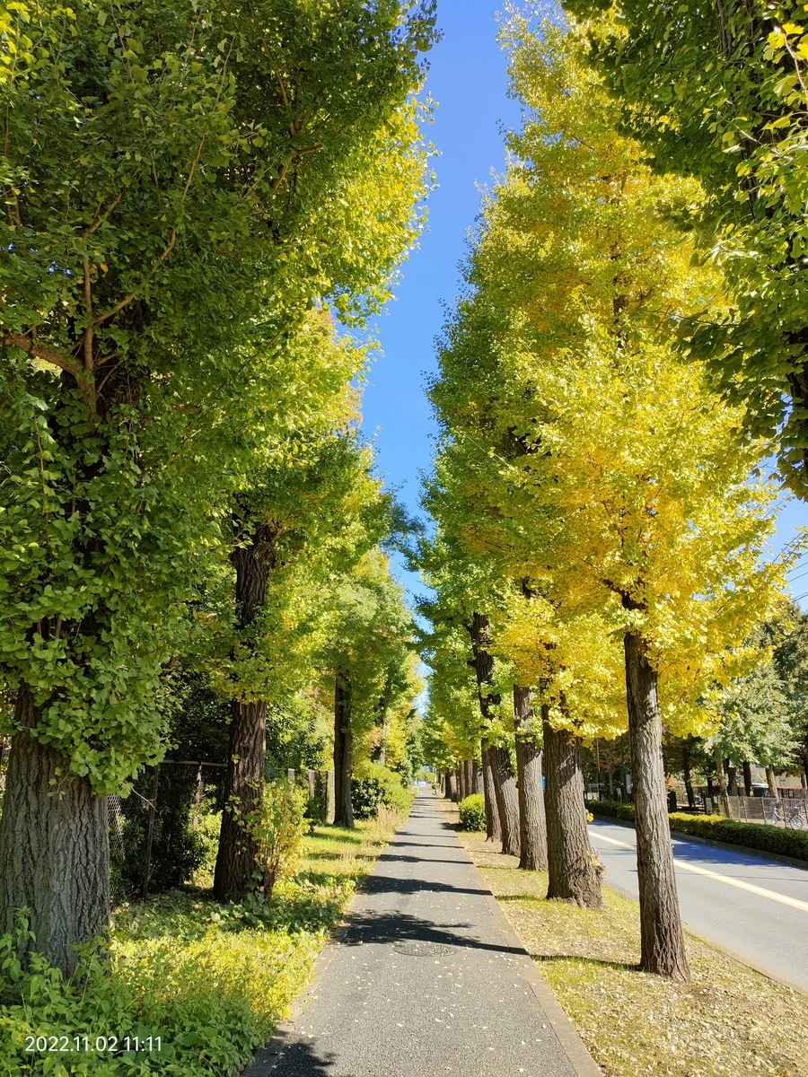いつものイチョウ並木。色づいてきました。これからは一日ごとに変化が楽しめそうです。深まる秋。