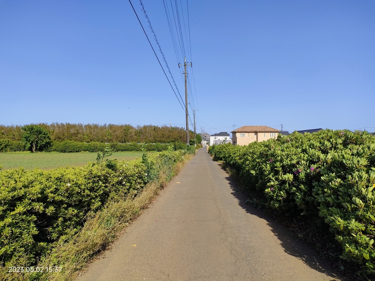 クルマ1台が通れるだけの道路。すれ違いはどうするのかなぁと思いつつ歩きます。