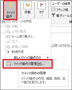 「クイック操作」から「クイック操作の管理(M)」を選択。