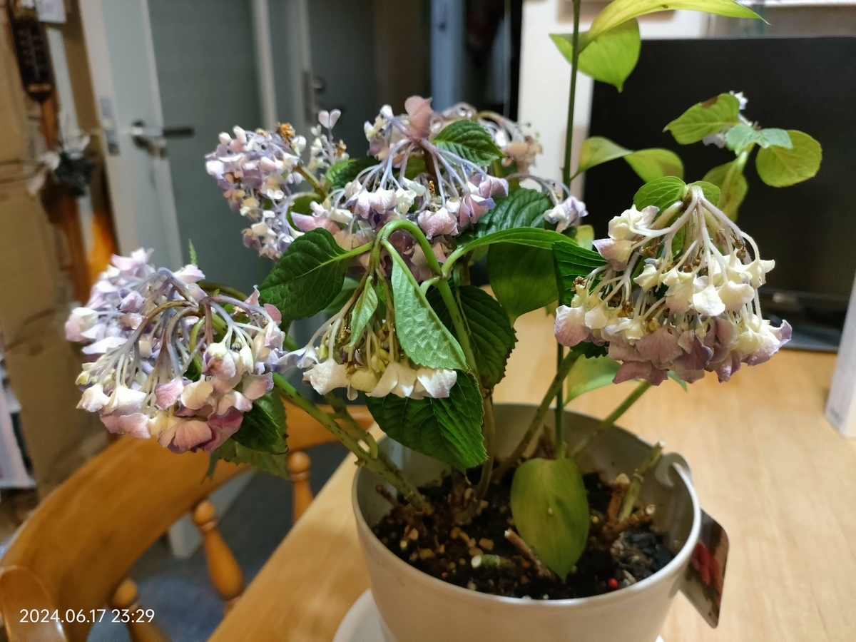 家のあじさいの代わりに、外のあじさいの観察にきました。