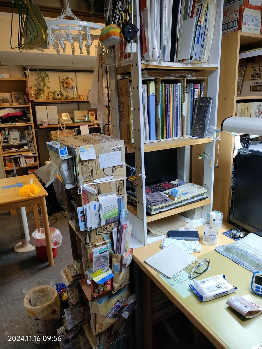 片付けを開始しました。先ず、崩れ落ちそうな封筒群を移動。