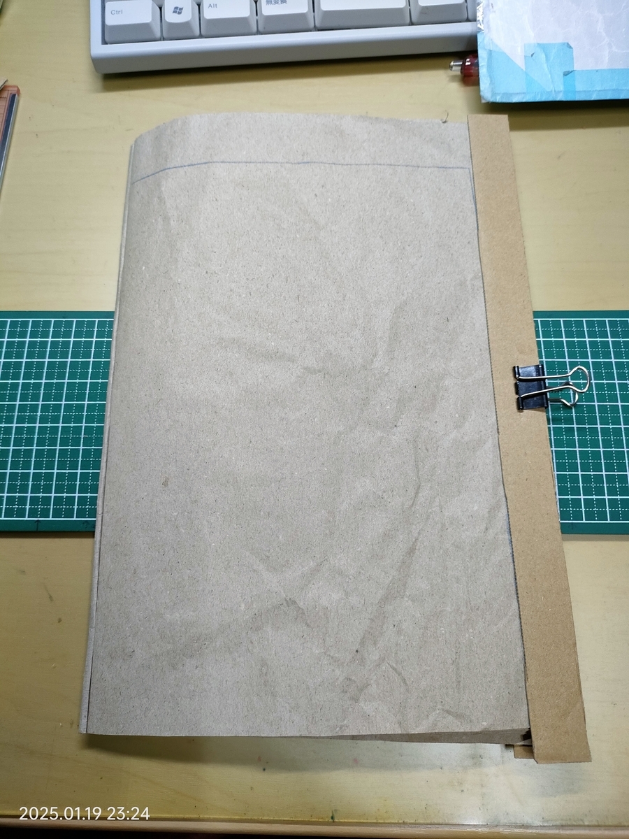それでクッションペーパーノートの長辺を挟んで、ダブルクリップで固定。