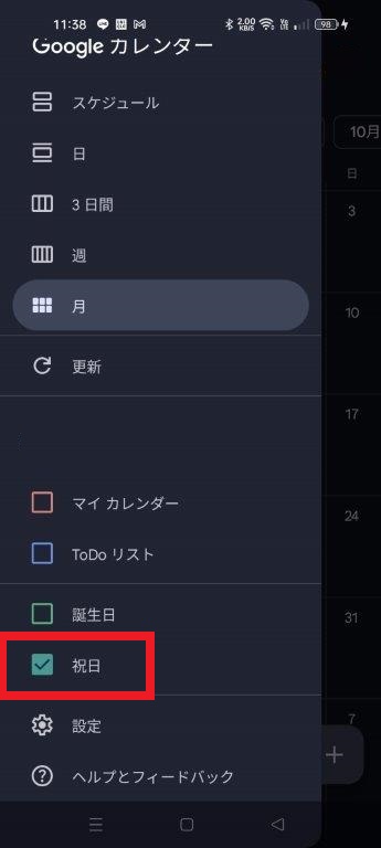 日本の祝日を表示することはすぐにわかりましたが、土日の色を変えるのができないのか、よくわかりませんでした。