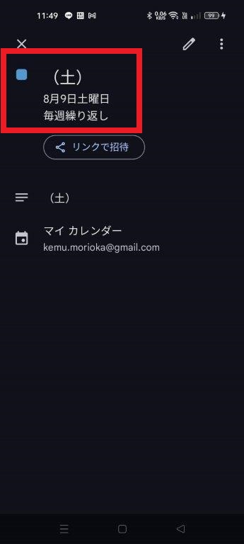 あと、土日の色の変え方が判らなかったので、毎週繰り返しの予定として土曜、日曜、それぞれ色を変えて設定。予定の名称を「(土)」「(日)」としました。